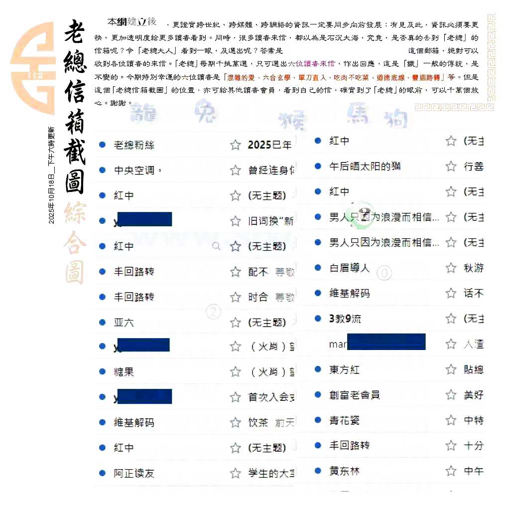 112期:六合皇金句/老总论码/萧公子/林大师/五行夺码/老总信箱截图