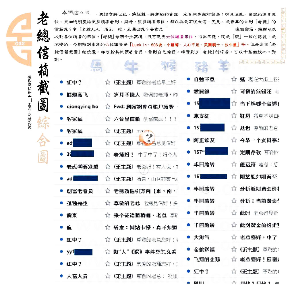 032期:六合皇金句/老总论码/萧公子/林大师/五行夺码/老总信箱截图
